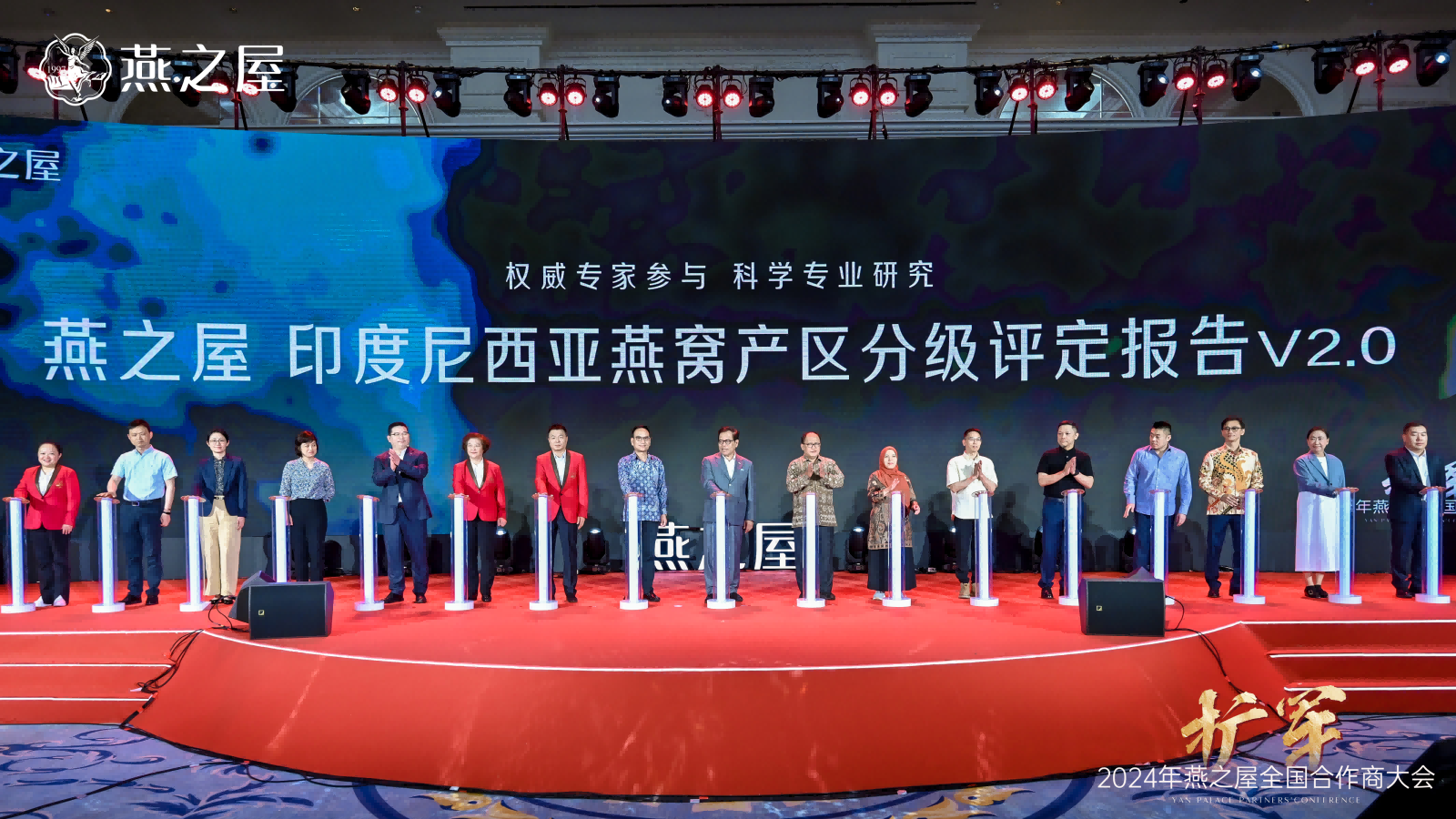隨后,印度尼西亞駐華大使周浩黎,印度尼西亞動植物檢疫標(biāo)準(zhǔn)檢驗中心主任斯利揚(yáng)托,廈門海關(guān)技術(shù)中心、國家燕窩及燕窩制品檢測重點實驗室主任徐敦明,印度尼西亞動植物檢疫標(biāo)準(zhǔn)檢驗中心研究員海爾米,印度尼西亞燕窩協(xié)會養(yǎng)護(hù)部部長安東,印度尼西亞燕窩協(xié)會國際貿(mào)易部副部長何文輝,江南大學(xué)未來食品科學(xué)中心鐘芳教授、陳茂深教授,華南理工大學(xué)食品科學(xué)與工程學(xué)院任嬌艷教授,印度尼西亞027工廠董事長魯?shù)?,印度尼西?04工廠普爾沃蘇特里斯諾,印度尼西亞014工廠露西亞娜,燕之屋執(zhí)行董事、副董事長鄭文濱,燕之屋執(zhí)行董事、總裁李有泉,燕之屋董事、副總經(jīng)理、供應(yīng)鏈中心總經(jīng)理黃丹艷,燕之屋副總經(jīng)理、研發(fā)技術(shù)總監(jiān)范群艷,燕之屋供應(yīng)鏈中心總監(jiān)魏溦等領(lǐng)導(dǎo)和嘉賓共同啟動發(fā)布《燕之屋印度尼西亞燕窩產(chǎn)區(qū)分級評定報告V2.0》。這標(biāo)志著燕之屋在專業(yè)化、標(biāo)準(zhǔn)化、高質(zhì)量發(fā)展上更進(jìn)一步。