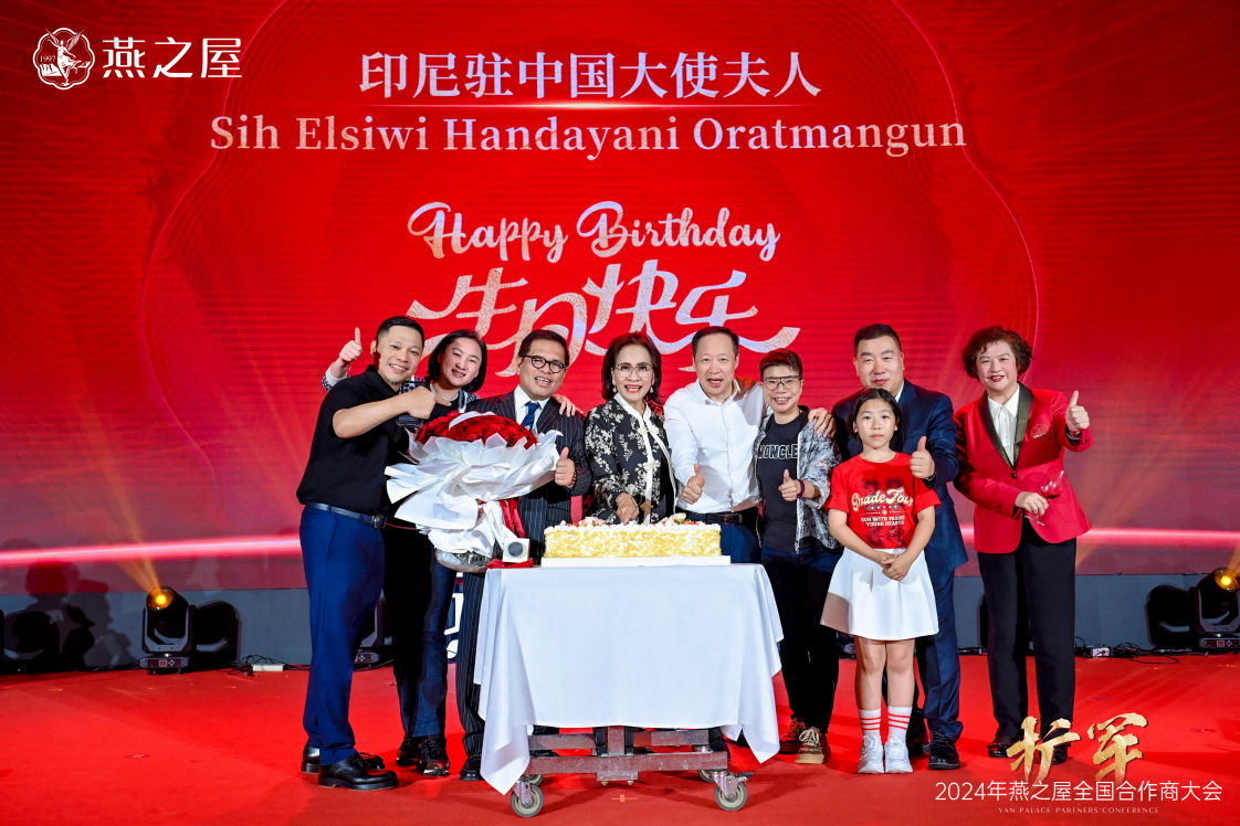 當(dāng)天,燕之屋生態(tài)產(chǎn)業(yè)園同步開園,與燕之屋全國合作商大會的召開可謂雙喜臨門。燕之屋創(chuàng)始人、董事長黃健在祝酒詞中說道:“今天是一個值得銘記的日子,是燕之屋發(fā)展歷程中新的里程碑,我們共同見證了燕之屋生態(tài)產(chǎn)業(yè)園的盛大開園,在全國合作商大會上共同探討了行業(yè)趨勢、分享了成功經(jīng)驗,進(jìn)一步鞏固了我們的合作關(guān)系。我相信,在未來的日子里,我們將攜手并進(jìn)、共創(chuàng)輝煌。”此外,大會當(dāng)日亦是印尼駐中國大使夫人“依布魏魏可歐拉蠻古”的生日,燕之屋為她送上生日蛋糕與祝福。晚宴上,精彩紛呈的歌舞表演“碗”美呈現(xiàn)撼動人心的視聽盛宴,使得在場嘉賓情緒高漲,現(xiàn)場氛圍熱烈非凡。