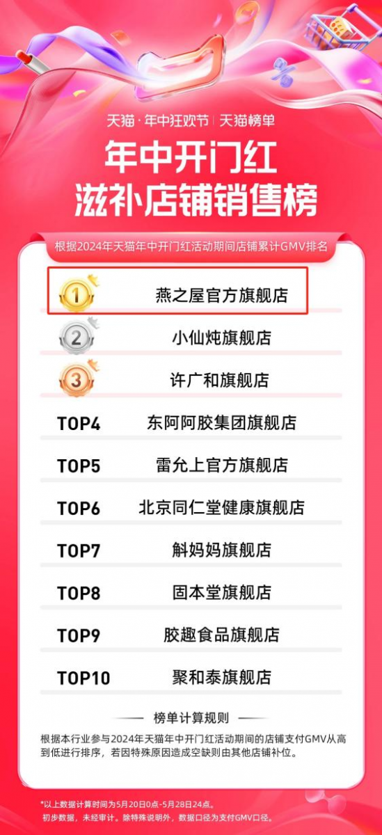 隨著618大幕拉開(kāi),第一波戰(zhàn)報(bào)火熱出爐。據(jù)阿里健康發(fā)布的2024年天貓年中開(kāi)門紅健康行業(yè)成績(jī)單顯示,燕之屋官方旗艦店榮登滋補(bǔ)店鋪銷售榜第一、健康行業(yè)店鋪銷售榜第二,展現(xiàn)了燕之屋在品牌年輕化戰(zhàn)略中的深度思考和實(shí)踐能力。