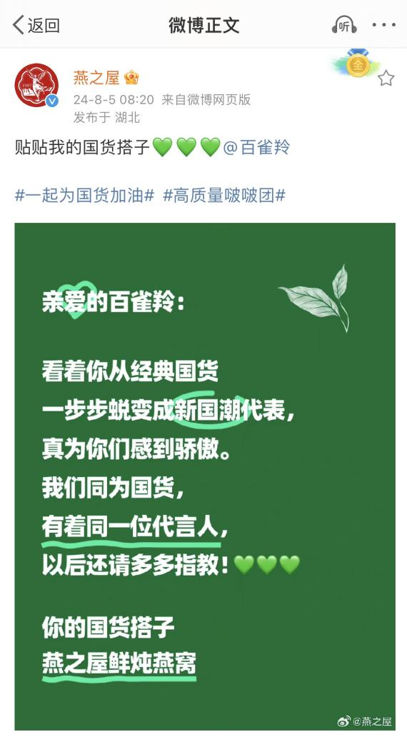 圖:燕之屋祝全球品牌代言人王一博生日快樂