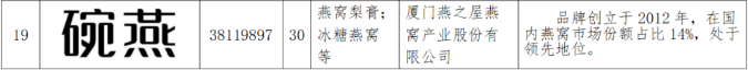 圖:燕之屋“碗燕”商標(biāo)注冊證