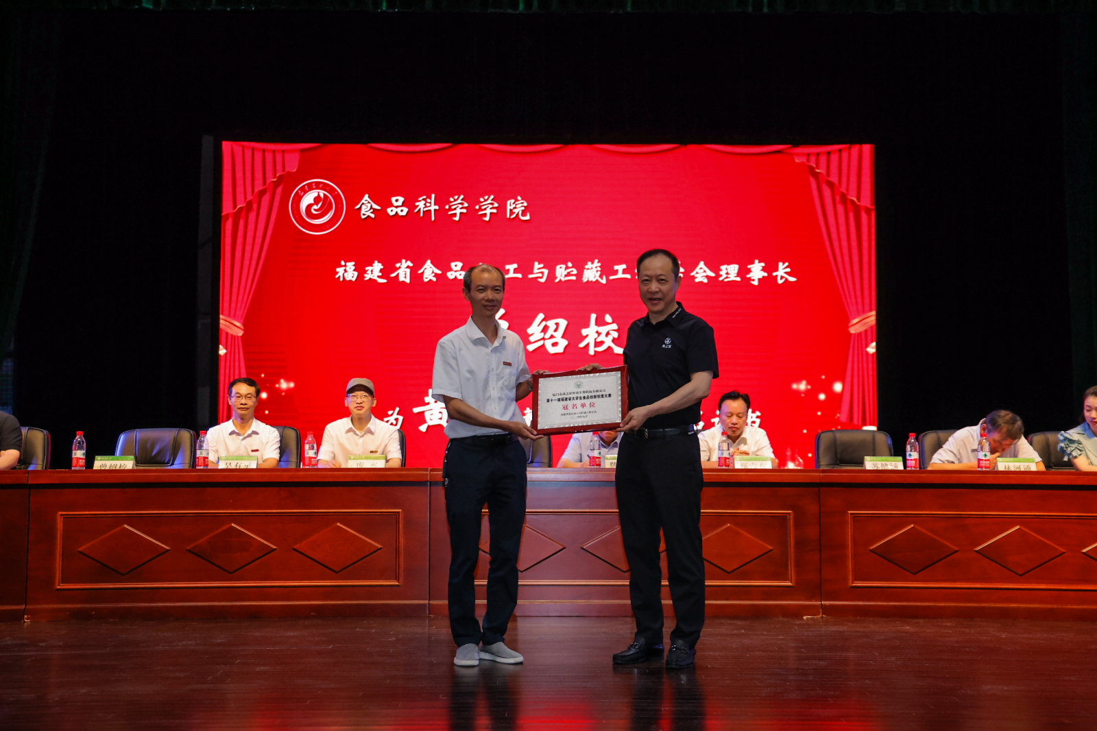 隨后,由福建省食品加工與貯藏工程學(xué)會(huì)理事長曾紹校教授為黃健董事長頒發(fā)冠名證書。