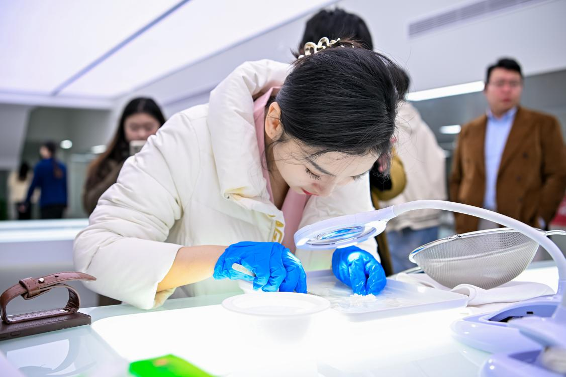 行至窗明幾凈的挑揀車(chē)間,新華社一行駐足凝視、傾聽(tīng)講解,領(lǐng)略燕之屋精益求精的匠心精神。燕之屋旗下高端燕窩品牌“碗燕”產(chǎn)品從原料到貨到成品出庫(kù)再到消費(fèi)者手中一共須經(jīng)歷49道工序,層層把關(guān)。在原料上,燕之屋精益求精,甄選自東南亞優(yōu)質(zhì)金絲燕燕窩,經(jīng)由海關(guān)檢驗(yàn)檢疫認(rèn)證;在工藝上,由800多名如鷹眼般視力的挑揀師純手工6遍挑毛,精挑細(xì)揀,不放過(guò)超過(guò)0.2mm的黑點(diǎn),以確保燕窩干凈無(wú)雜質(zhì)。在專(zhuān)業(yè)挑揀師的悉心指導(dǎo)下,新華社一行人員手持鑷子、細(xì)細(xì)挑揀,深度體驗(yàn)燕窩挑毛的精細(xì)工藝,深刻體會(huì)到高品質(zhì)產(chǎn)品背后的匠心與嚴(yán)苛。