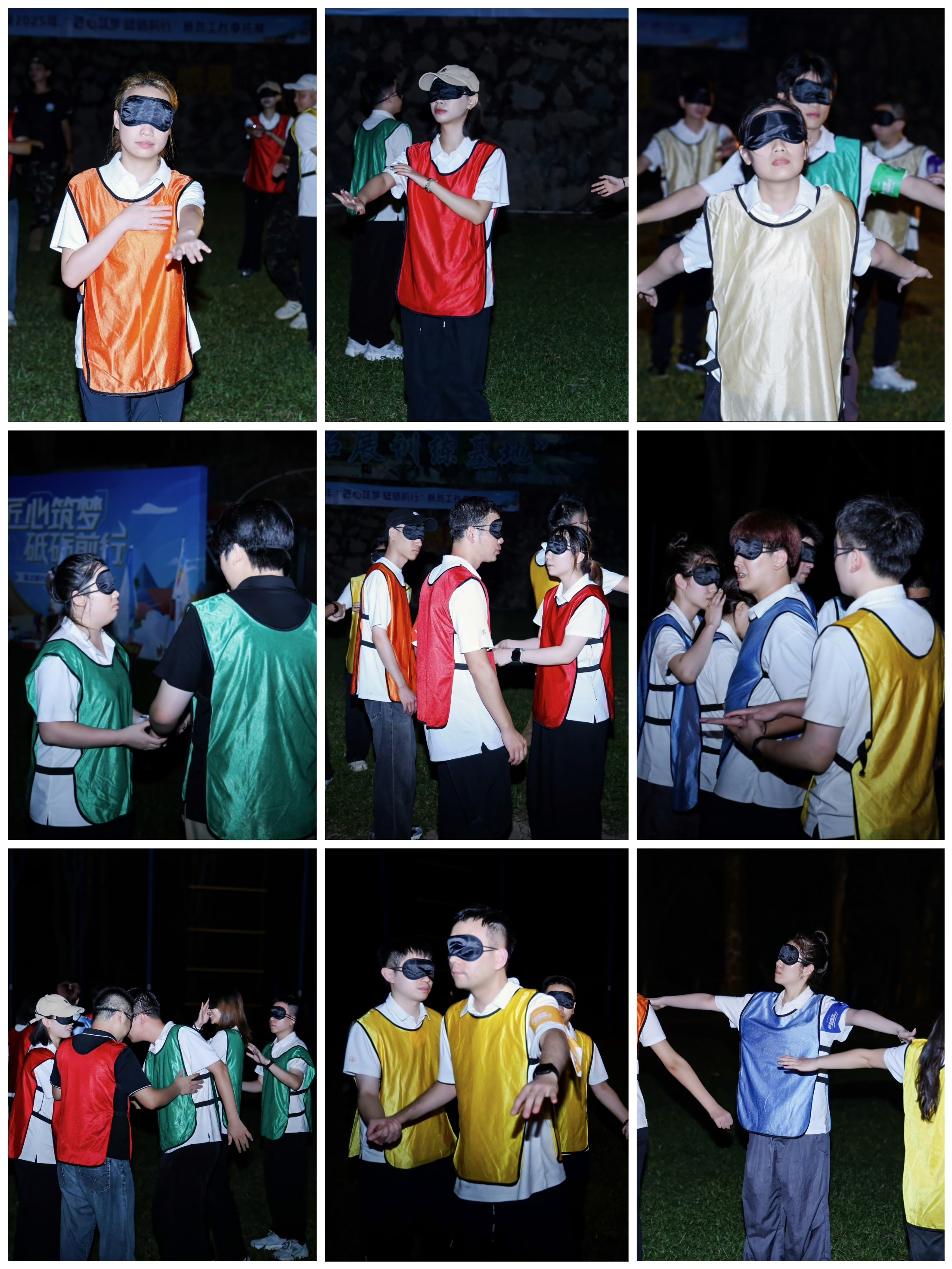 隨著夜幕降臨,“找回團(tuán)隊(duì)”項(xiàng)目將整場(chǎng)拓展推向新的高潮。隊(duì)員們被蒙住雙眼,在黑暗中尋找隊(duì)友,每當(dāng)遇到人的時(shí)候只能通過(guò)除語(yǔ)言外的其他方式及彼此默契來(lái)確認(rèn)是否是團(tuán)隊(duì)同伴。游戲過(guò)程中,已經(jīng)找回的隊(duì)友會(huì)被教官重新拆散,團(tuán)隊(duì)不僅需要再次找回成員,還需要緊緊守護(hù)隊(duì)友,堅(jiān)定彼此的選擇。那一刻,嘈雜的干擾聲遠(yuǎn)去,只留下對(duì)伙伴的信任指引方向。當(dāng)雙手終于相握,這份在困境中建立的羈絆,讓團(tuán)隊(duì)的凝聚力愈發(fā)堅(jiān)實(shí)。隨后的復(fù)盤會(huì)上,隊(duì)員們圍坐分享收獲、梳理經(jīng)驗(yàn),再一次體會(huì)到團(tuán)隊(duì)信任與凝聚的力量。